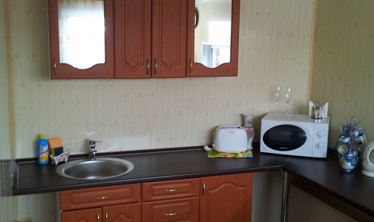 В коттедже: диван, зеркало, две кровати двуспальные, прикроватные тумбочки, стол, стулья, шкаф, мини-кухня, кондиционер, микроволновая печь, мини-холодильник, набор посуды, сейф, телевизор ЖК, электрочайник
